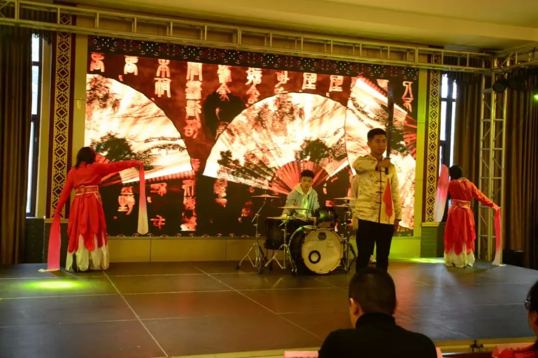 團(tuán)拜會(huì)當(dāng)天,各校區(qū)、各部門攜手獻(xiàn)上了眾多形式各異、別出心裁的節(jié)目。晚會(huì)精彩紛呈。教學(xué)部青年教師在繁重的教學(xué)任務(wù)外,加緊排練,以默契的配合帶來了精彩的現(xiàn)代舞串燒《少男少女》。棠外校區(qū)、雙中校區(qū)表演團(tuán)隊(duì)均刻苦學(xué)習(xí)印度舞,為大家奉上了異域風(fēng)情的舞蹈《天竺少女》、《印度舞娘》。川越綜合辦表演團(tuán)隊(duì)勤奮練習(xí)古典舞,以靈動(dòng)的舞姿和完美的配合,出色地完成了群舞《采薇》的表演。