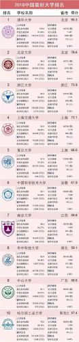 2月25日,作為全球四大大學排名系統之一,擁有15年歷史的“世界大學學術排名(ARWU)”,最新發布2018“中國最好大學排名”。除我國港澳臺地區外的實力最強的600所內地大學“排排坐”,清華大學(分數線,專業設置)、北京大學(分數線,專業設置)、浙江大學位列前三,上海交通大學(分數線,專業設置)、復旦大學(分數線,專業設置)、中國科學技術大學、南京大學、華中科技大學、中山大學、哈爾濱工業大學(分數線,專業設置)依次排在4到10名。地方高校中表現最好的三所大學分別是蘇州大學(27名)、上海大學(41名)和南方科技大學(43名)。