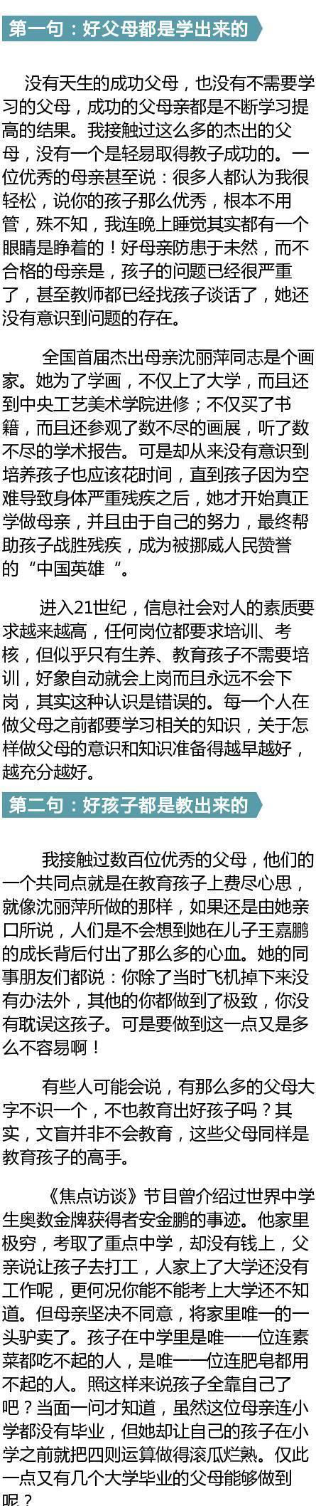 在中國,孩子的教育一直是各位父母最關心的問題。父母是孩子的第一任老師,和孩子接觸最近的是父母。很多父母不知道怎么教育孩子,不是所有的父母都是天生的,這其中需要很長的實踐時間。