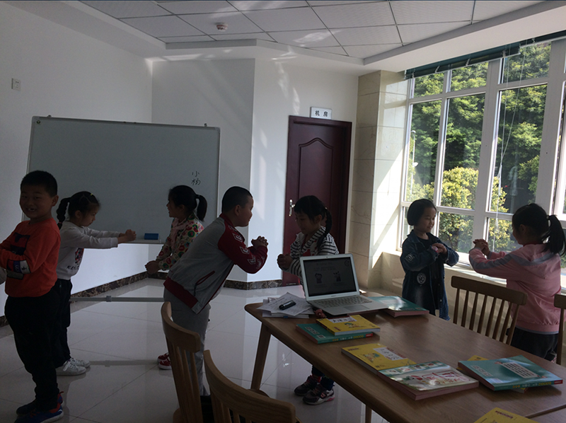 學習之余,楊老師還向孩子們介紹了中華傳統禮儀——拱手禮。孩子們都興高采烈地爭相來展示。其中,帥帥、春春、林鑫三位小朋友主動上來當小老師教其他小朋友識字,馨怡小朋友剛開始還有點害羞,后來便慢慢地融入了課堂,還帶著大家朗讀課文。