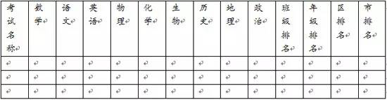 該表的一些選項(xiàng)可能在某些考試無法統(tǒng)計(jì),比如說市排名,區(qū)排名甚至排名,那么有哪個(gè)就寫哪個(gè),關(guān)鍵在于前面成績的統(tǒng)計(jì)。