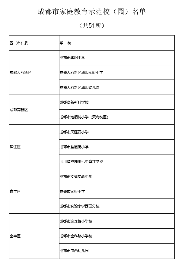 四川新聞網成都8月23日訊(記者 陳淋 實習生 劉靜怡)近日,成都市教育局公布《成都市家庭教育示范校(園)名單》,成都市華陽中學等51所學校被命名為成都市家庭教育示范校(園),快看看有你的學校嗎?