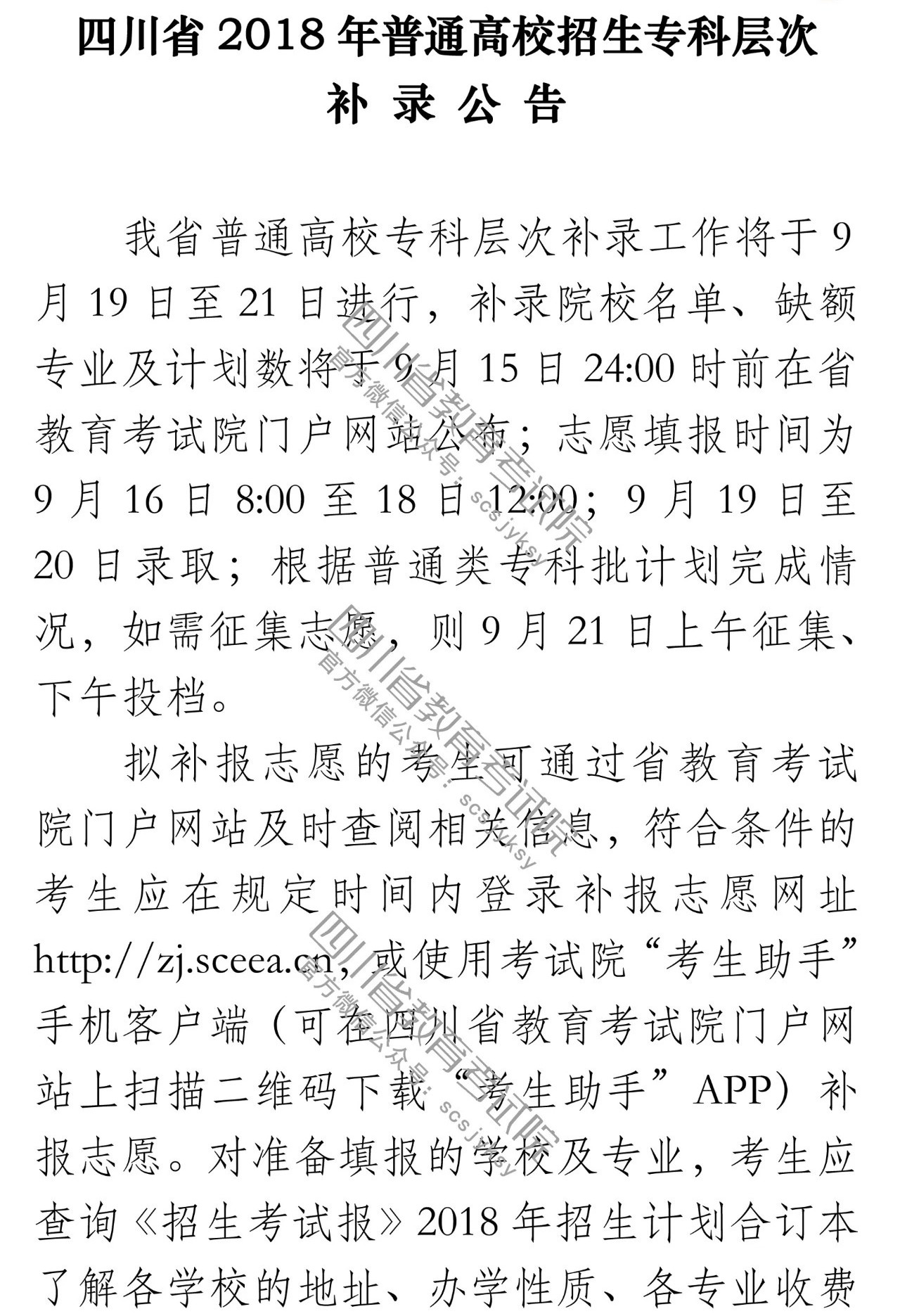 四川省2018年普通高校招生專科層次補錄公告出爐!