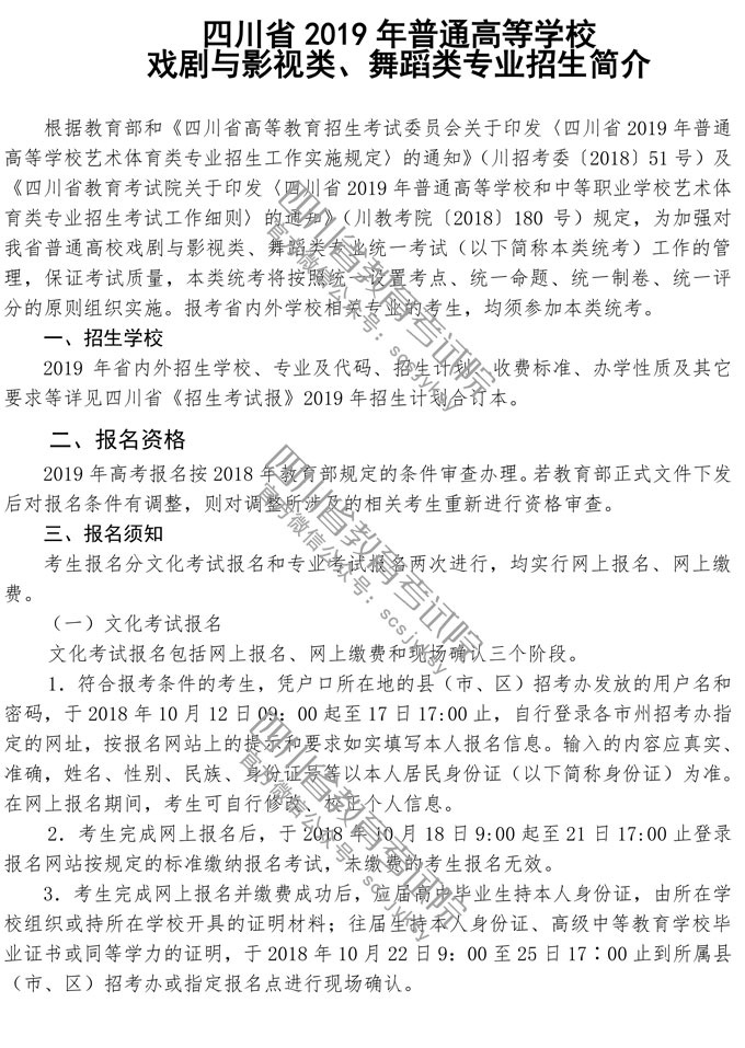 四川省2019年普通高等學(xué)校戲劇與影視類、舞蹈類專業(yè)招生簡(jiǎn)介