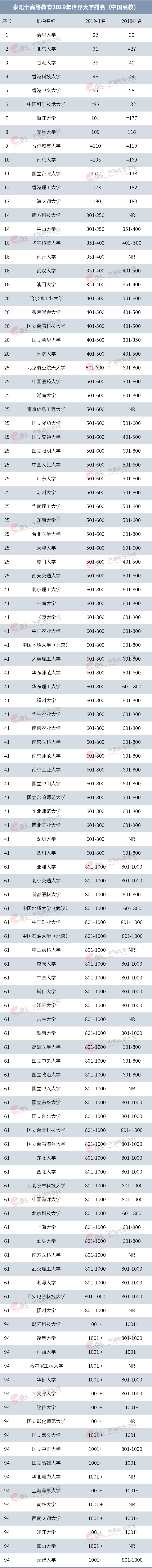 這份最終年度排行版第15年對全球超過1250所高等教育機構進行了排名,涉及86個國家。 中國大陸今年在該榮譽名單中出現(xiàn)了新的第一名,同時也是2011年以來的最高排名。
