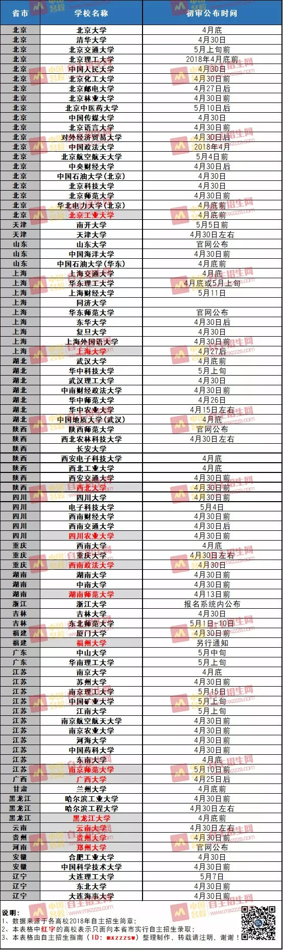 ● 以下是2018年各高校自主招生初審公布時間,供參考了解: