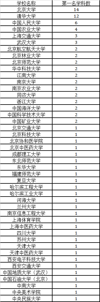 2018中國(guó)最好學(xué)科排名各高校第一名學(xué)科數(shù)統(tǒng)計(jì)