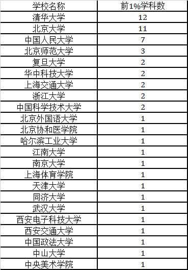 2018中國(guó)最好學(xué)科排名各高校前1%學(xué)科數(shù)量統(tǒng)計(jì)