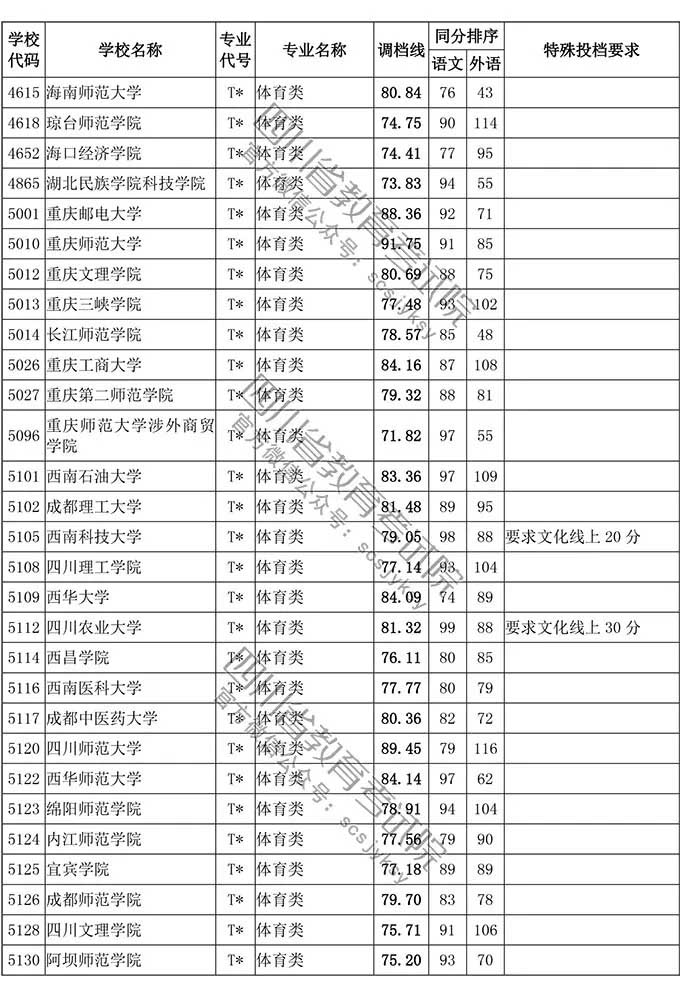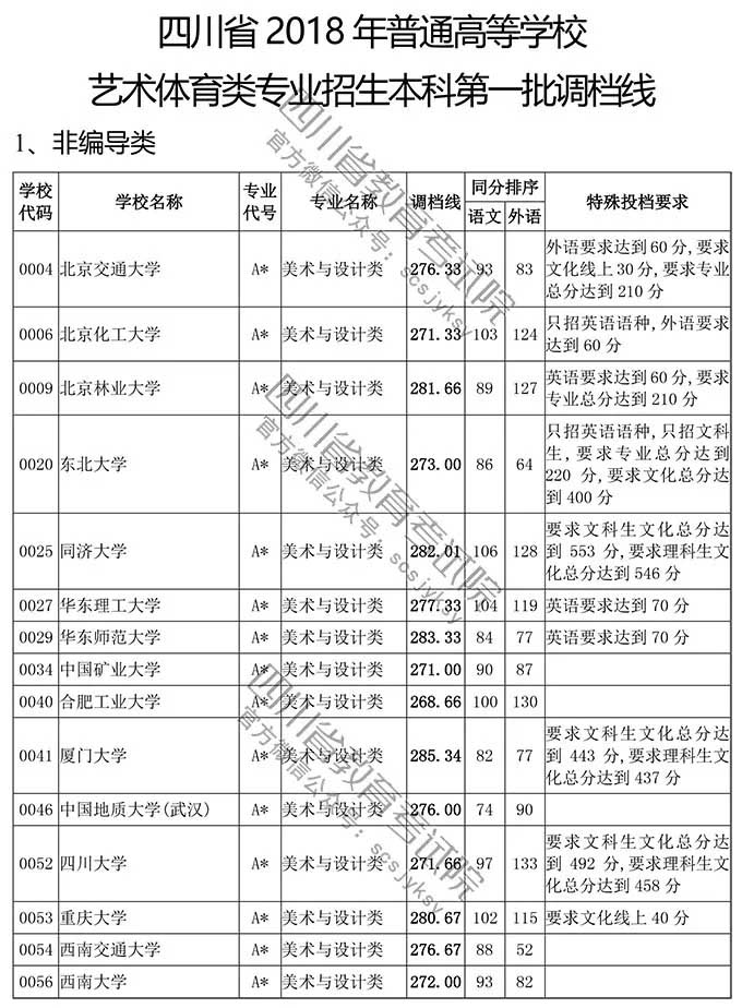 關鍵詞:四川2018年 高校藝體類 專業招生 本科第一批 調檔線