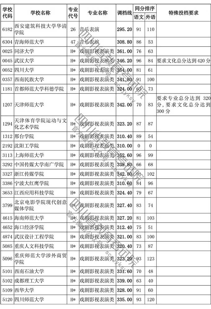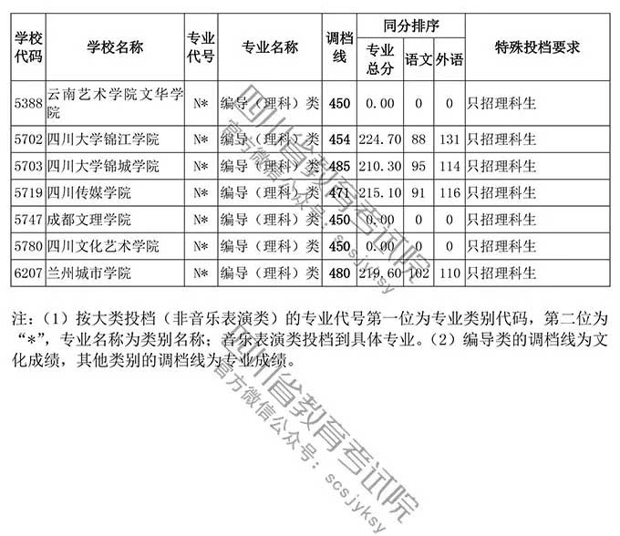 四川2018年高校藝體類專業招生本科第一批調檔線出爐