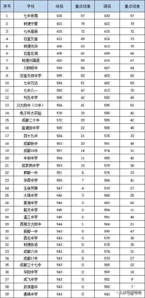 注:2018年重點線為543分,只有成績達到重點線才能填報以上高中。