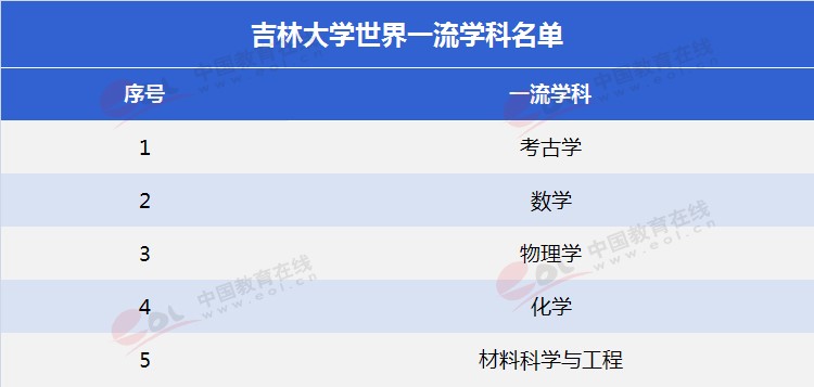 吉林大學入選我國“世界一流大學”A類高校,有5個學科入選我國“世界一流學科”建設名單,分別是考古學、數(shù)學、物理學、化學、材料科學與工程。