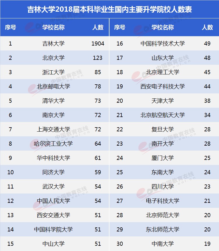 2018軟科世界大學學術排名中,中國內地共有51所大學上榜,吉林大學世界排名201—300,位列中國大學13—23位。