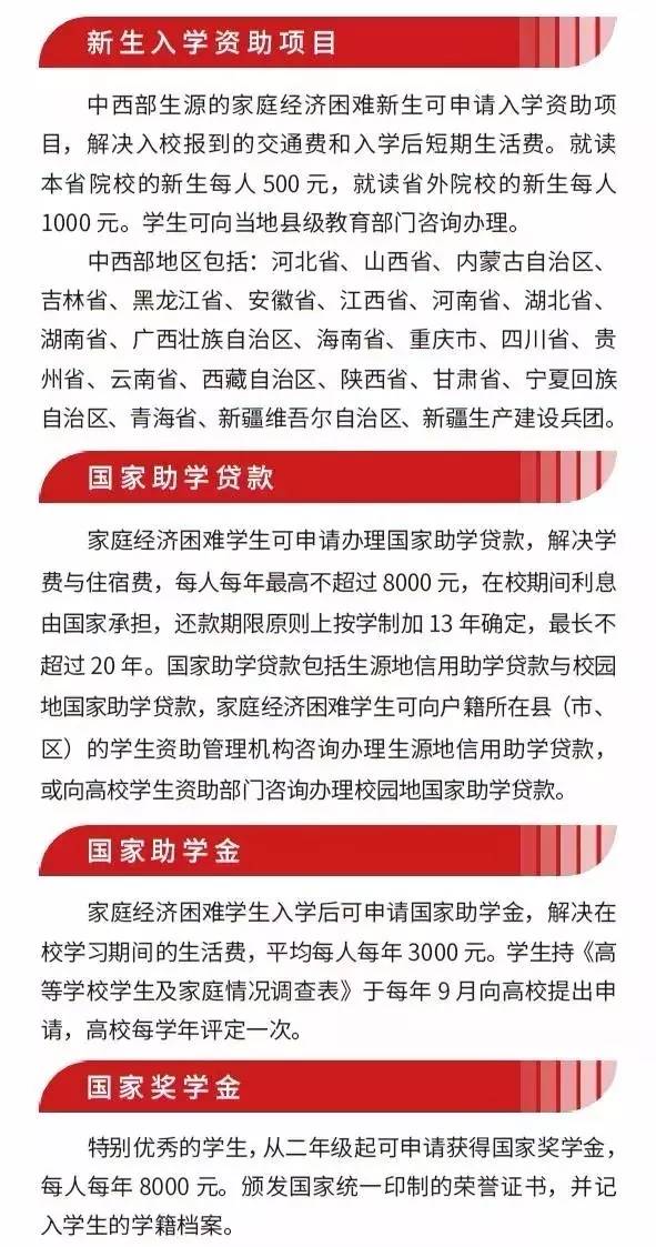 下面,來(lái)看看全國(guó)學(xué)生資助管理中心為大家精心準(zhǔn)備的大禮包——高校本專科學(xué)生資助政策簡(jiǎn)介↓↓↓