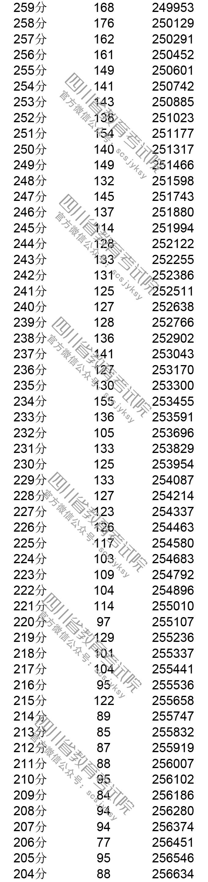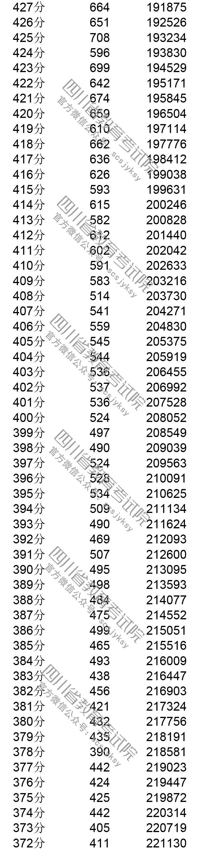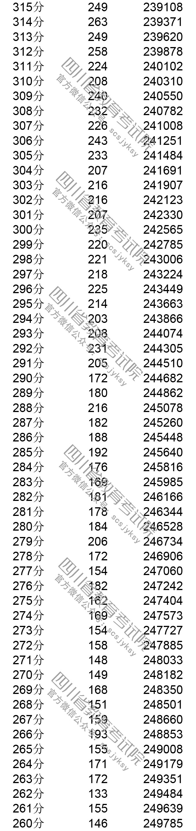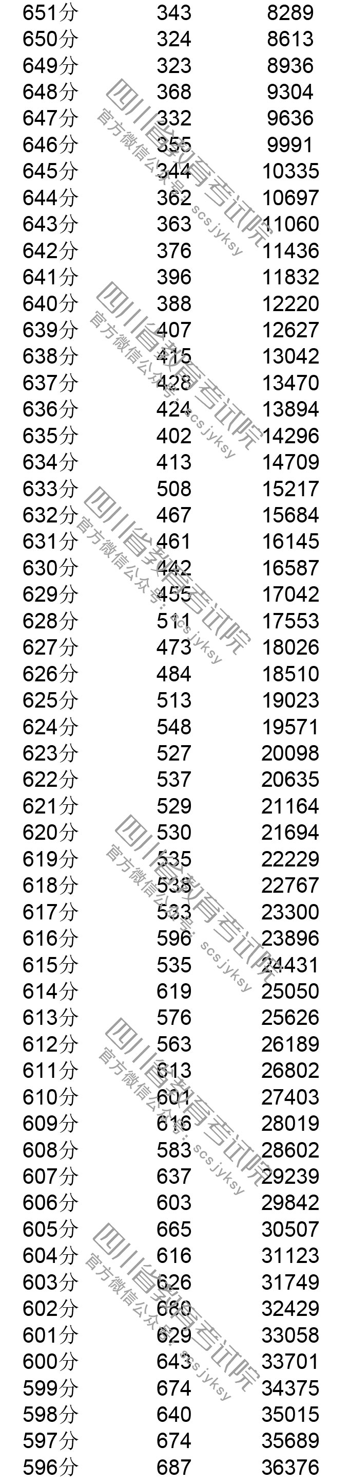 四川省2019年普通高考理科成績分段統計表