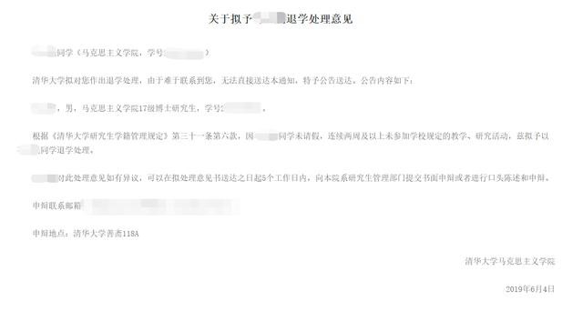 6月4日,清華大學擬對兩名違反學校規定的博士生進行退學處理。公告一經發出,引起嘩然。