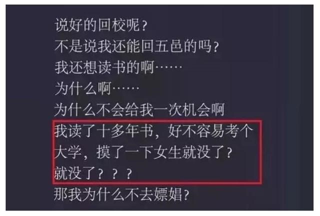 廣東五邑大學在校生黃同學曾在網上發帖--《我辛辛苦苦的考大學,摸了一下女生就全沒了》。