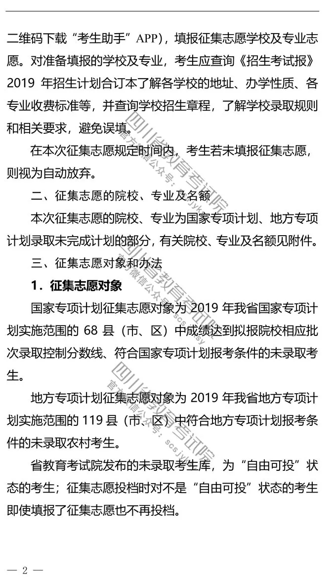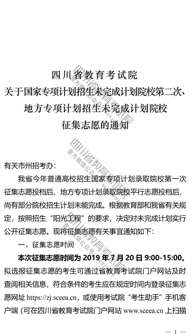 關于國家專項計劃招生未完成計劃院校第二次、地方專項計劃招生未完成計劃院校征集志愿的通知