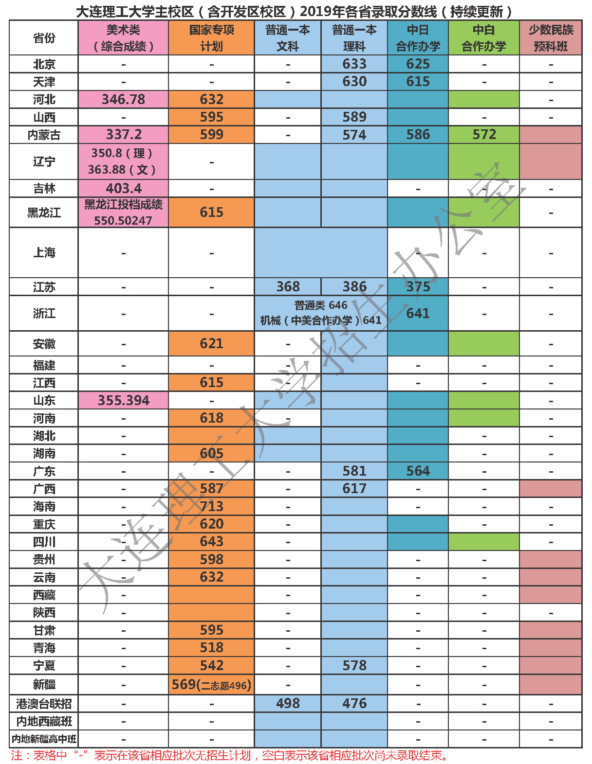 大連理工大學(xué)主校區(qū)(含開(kāi)發(fā)區(qū)校區(qū))2019年各省錄取分?jǐn)?shù)線(持續(xù)更新)