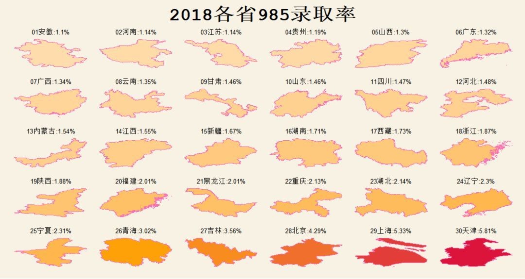 講完考入好大學的學霸“含金量”,再給大家分析下2018年的985/211大學錄取數據,從不同地區的角度解讀考上名校的難度。