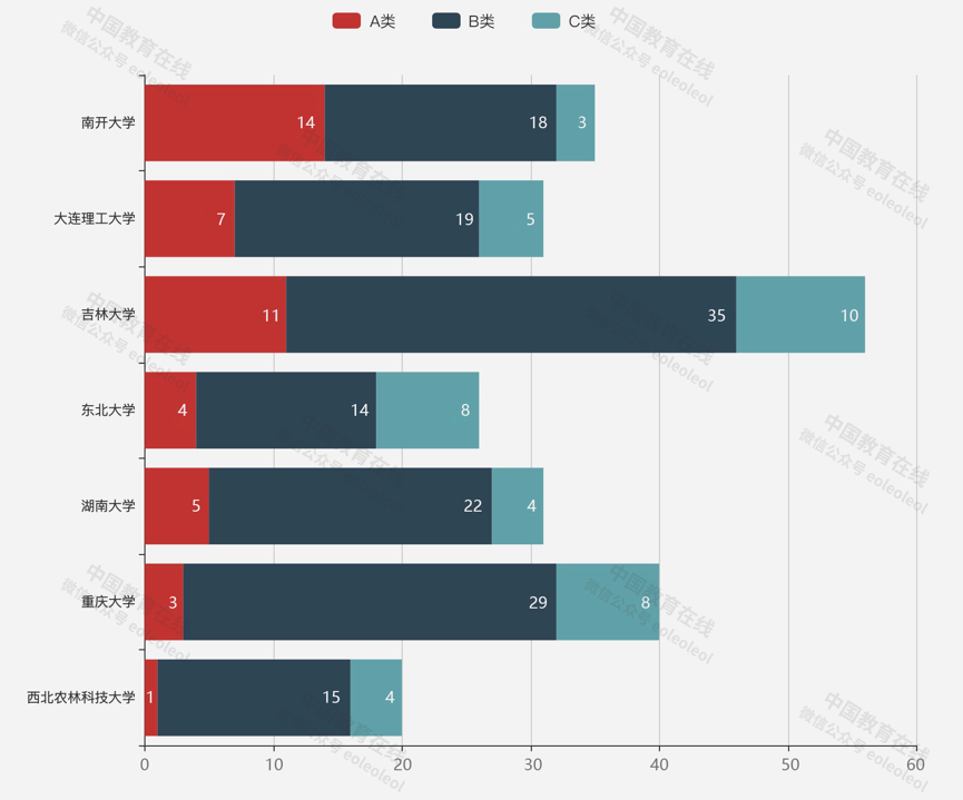 在全國第四次學科評估中,全國39所985工程高校大部分都擁有至少1個A+學科,但是也有7所985高校,處于無A+學科的尷尬境地,分別是南開大學、吉林大學、大連理工大學、湖南大學、重慶大學、東北大學和西北農林科技大學。