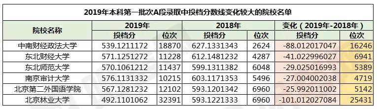 其中,貿大、上財、中傳、西南財、北外遭遇“小斷檔”。共有14所大學的2019投檔線,對比2018有明顯幅度下降!