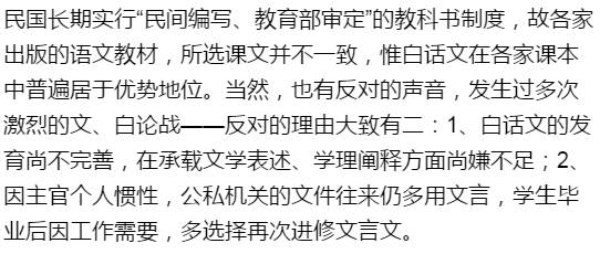 1 民國時期,小學課本不選文言文,初中再逐漸遞增