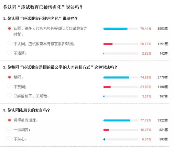 以下一組鳳凰網對于應試教育相關調查數據,僅供參考,僅供家長深思!